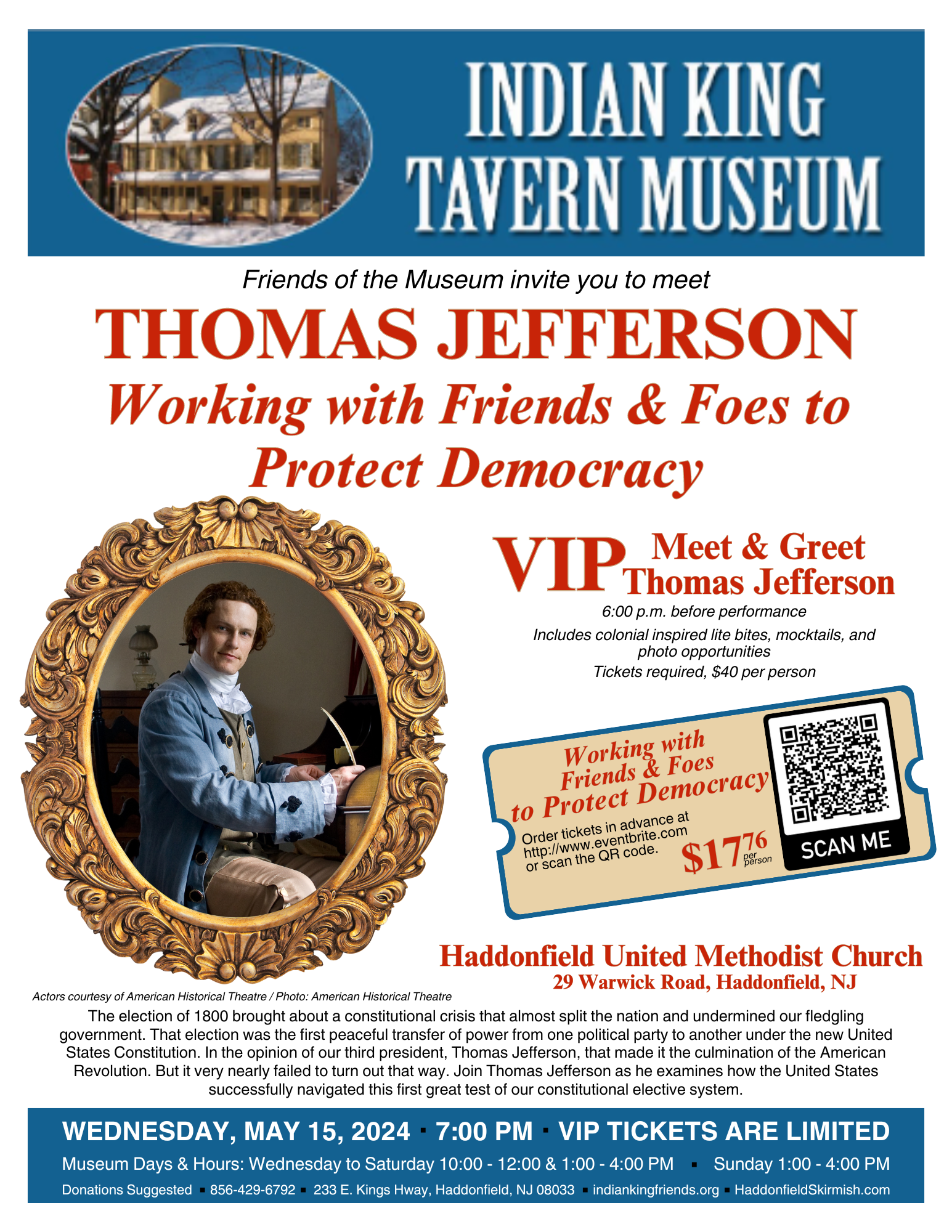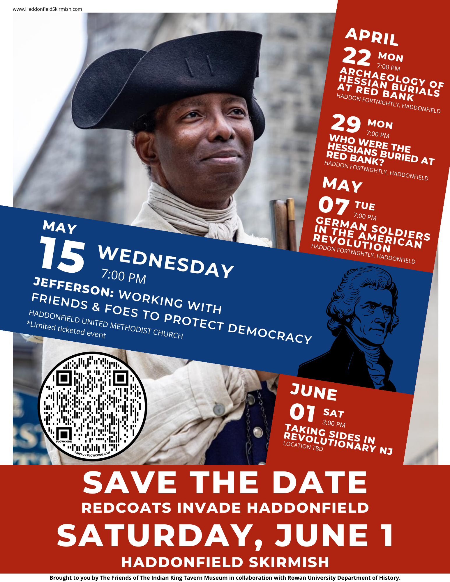 The Haddonfield Skirmish and all the lead-up events are a community effort organized by the Friends of the Indian King Tavern Museum, a non-profit supporting Haddonfield’s historic treasure. Over 40 local and regional organizations collaborate to host a series of educational and interactive events to incorporate the history, civics and politics of the revolutionary era.